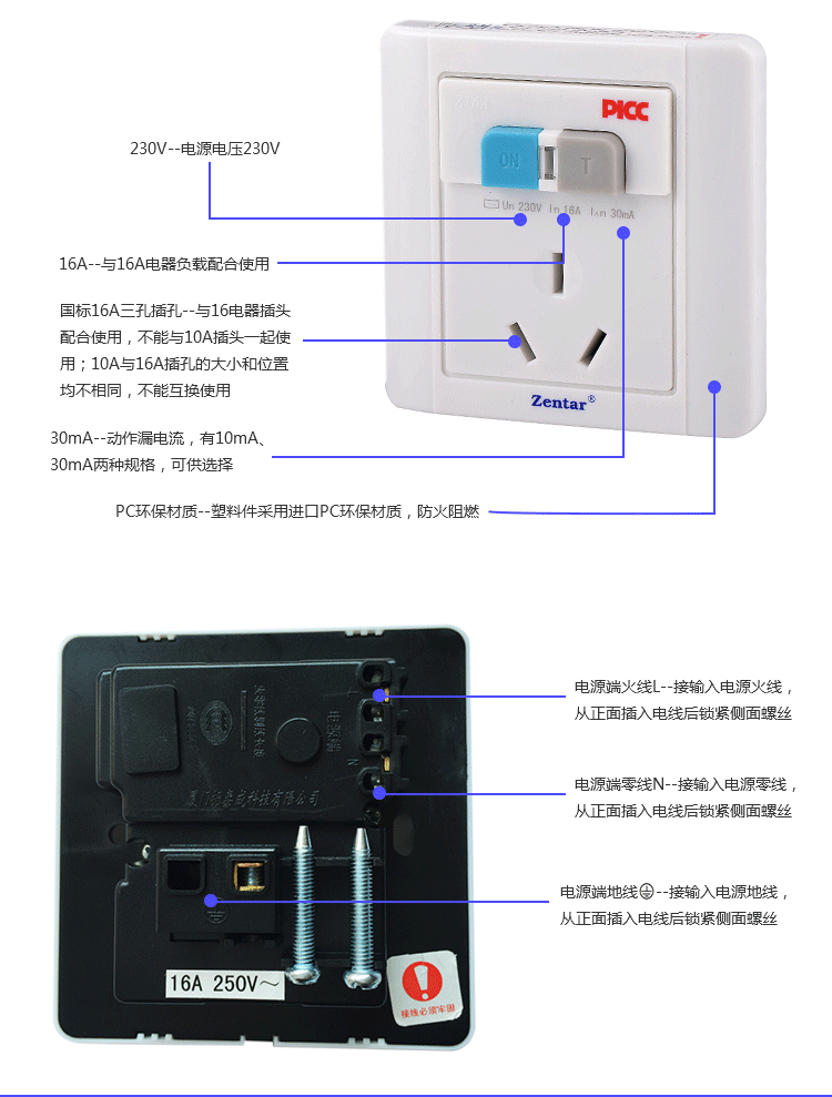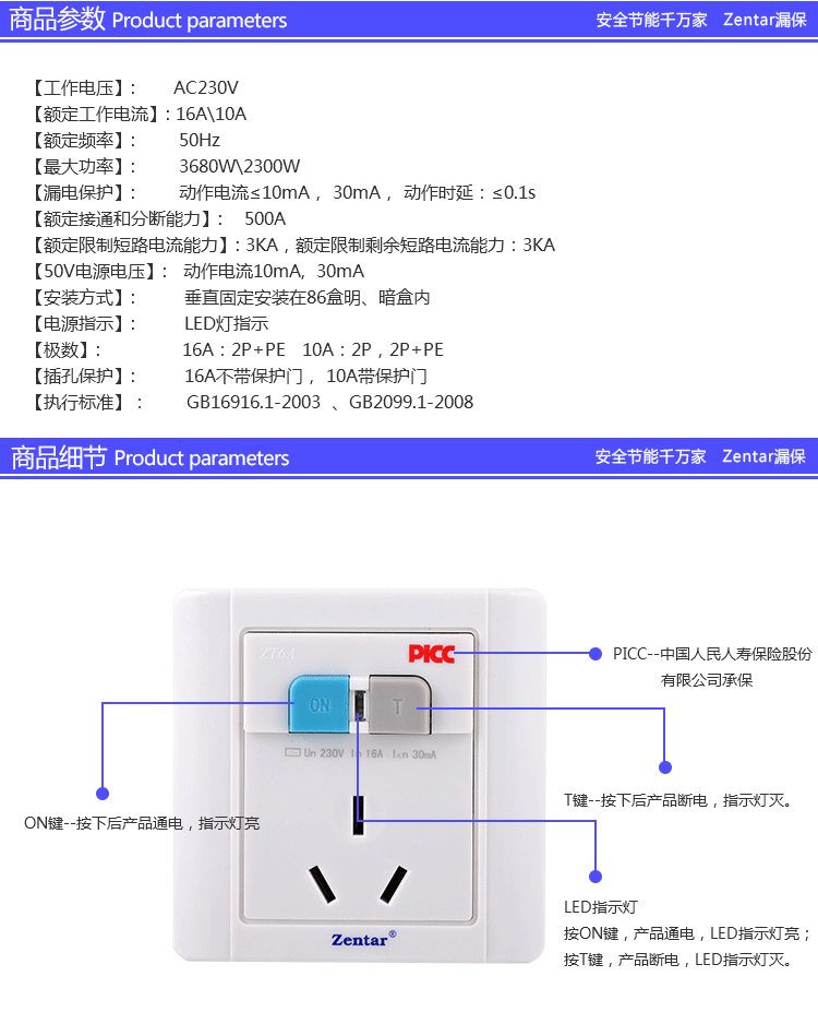 漏電保護墻壁型開關(guān)ZT6-10A/16A